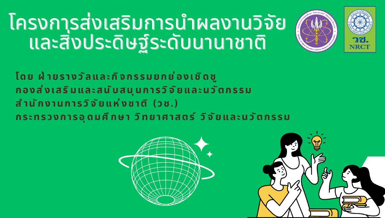 สำนักงานการวิจัยแห่งชาติ (วช.) ได้กำหนดแผนงานการนำเสนอผลงานวิจัย สิ่งประดิษฐ์และนวัตกรรมของนักวิจัยและนักประดิษฐ์เพื่อเป็นตัวแทนของประเทศไทยเข้าร่วมประกวดและจัดแสดงในเวทีระดับนานาชาติ ประจำปีงบประมาณ 2569 จำนวน 4 เวที ดังนี้