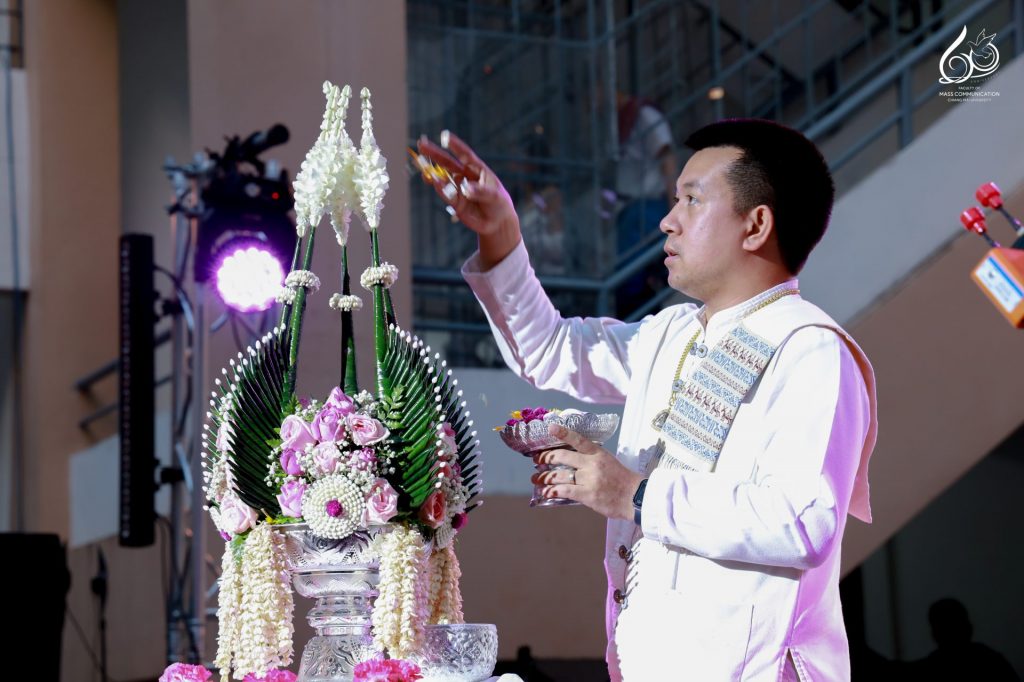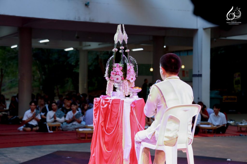 โอกาสนี้ กิจกรรมได้รับเกียรติจาก ผู้ช่วยศาสตราจารย์ ดร.ศุภฤกษ์ โพธิไพรัตนา คณบดีคณะการสื่อสารมวลชน มหาวิทยาลัยเชียงใหม่ เป็นประธานกล่าวเปิดงาน พร้อมด้วย คณาจารย์ และบุคลากรสายสนับสนุนเข้าร่วมกิจกรรมและให้กำลังใจแก่นักศึกษา สะท้อนถึงความร่วมมือร่วมใจของผู้บริหาร คณาจารย์ บุคลากร และนักศึกษา ในการร่วมกันขับเคลื่อนการเรียนรู้ควบคู่การอนุรักษ์วัฒนธรรมอย่างยั่งยืนของคณะการสื่อสารมวลชน มหาวิทยาลัยเชียงใหม่