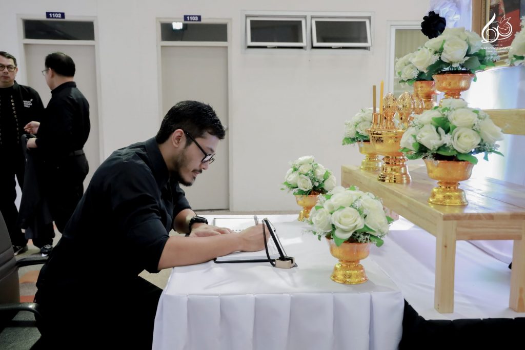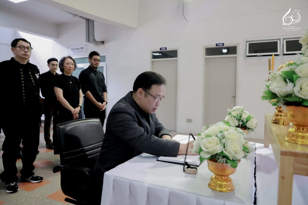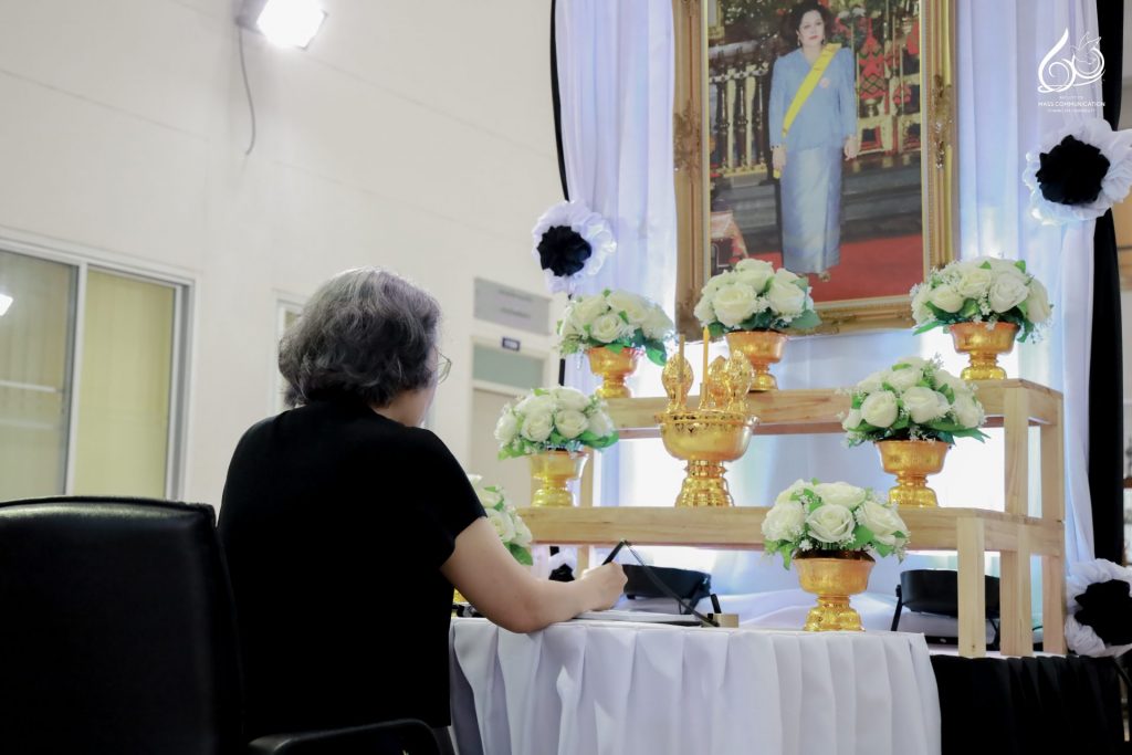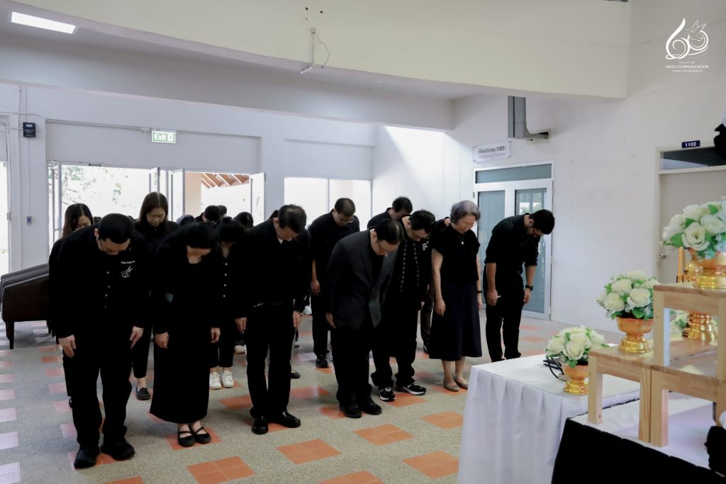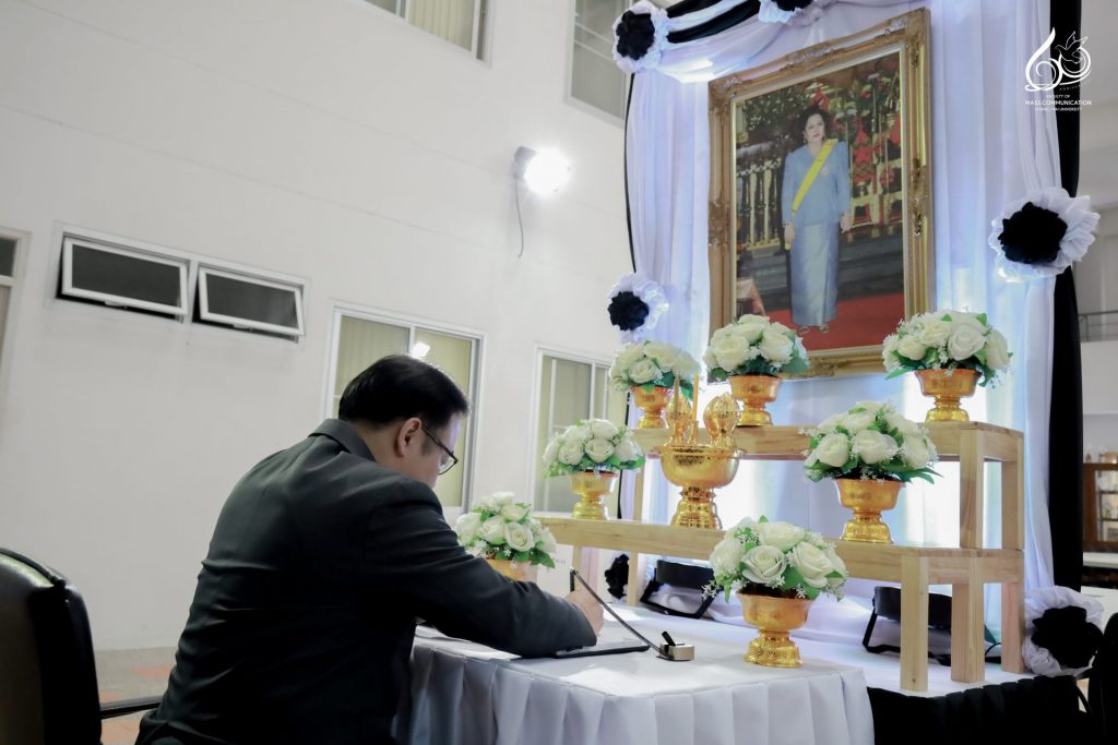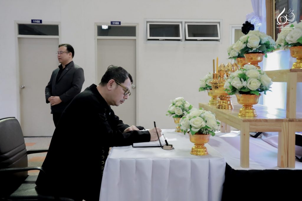 ในพิธีดังกล่าว คณบดีได้เป็นผู้นำในการยืนสงบนิ่งถวายความอาลัยเป็นเวลา 93 วินาที เพื่อแสดงความจงรักภักดีและรำลึกถึงพระมหากรุณาธิคุณที่ทรงมีต่อปวงชนชาวไทย พร้อมทั้งนำผู้เข้าร่วมพิธีลงนามในสมุดถวายความอาลัย เพื่อแสดงความอาลัยและเทิดทูนในพระเกียรติคุณของพระองค์