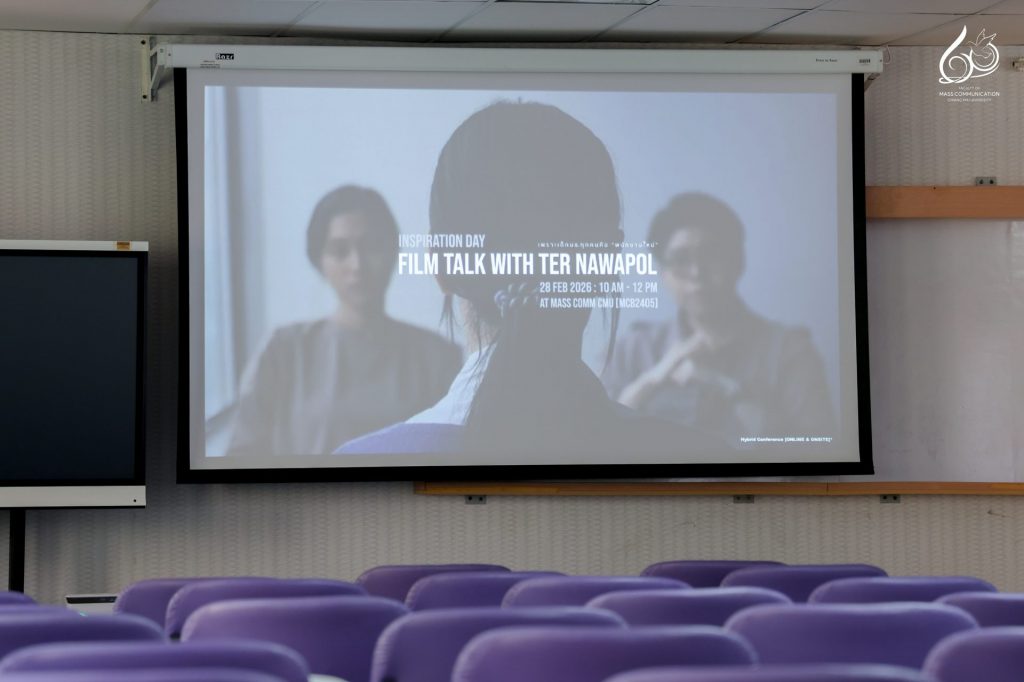 คณะการสื่อสารมวลชน มหาวิทยาลัยเชียงใหม่ จัดกิจกรรม Inspiration Day “แรงบันดาลใจในการค้นคว้า” Digital Film Talk to Ter Nawapol : การทดลองครั้งใหม่ในภาพยนตร์ของ เต๋อ นวพล” โดยได้รับเกียรติจาก คุณนวพล ธำรงรัตนฤทธิ์ ผู้กำกับภาพยนตร์ นักเขียนบท นักเขียน และช่างภาพชื่อดัง ร่วมบรรยายพิเศษผ่านรูปแบบ Online Meeting ในหัวข้อ “การทดลองครั้งใหม่ในภาพยนตร์ของ เต๋อ นวพล” เพื่อเปิดพื้นที่การเรียนรู้และสร้างแรงบันดาลใจด้านการสร้างสรรค์ภาพยนตร์ร่วมสมัย ให้แก่นักศึกษาและผู้สนใจ โดยมีนักศึกษากระบวนวิชา 852301 ภาพยนตร์ทดลองสำหรับงานพาณิชย์ศิลป์ (Experimental Film for Commercial Art) และนักศึกษาที่สนใจเข้าร่วมอย่างพร้อมเพรียง ณ ห้อง MCB 2405 อาคารเรียนรวม คณะการสื่อสารมวลชน มหาวิทยาลัยเชียงใหม่ ในวันเสาร์ที่ 28 กุมภาพันธ์ 2569 เวลา 10.00 – 12.00 น.