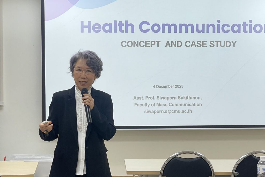ผู้ช่วยศาสตราจารย์ ดร.ศิวพร สุกฤตานนท์ รองคณบดีฝ่ายวิจัยและวิเทศสัมพันธ์ คณะการสื่อสารมวลชน มหาวิทยาลัยเชียงใหม่ ร่วมเป็นวิทยากรบรรยายหัวข้อ “การสื่อสารสุขภาพ” (Health Communication) ให้กับนักศึกษาระดับปริญญาตรีจาก University of Technology Sydney (UTS) จำนวน 30 คน ที่เดินทางมาศึกษาดูงาน ณ คณะสาธารณสุขศาสตร์ มหาวิทยาลัยเชียงใหม่ ในวันที่ 4 ธันวาคม 2568