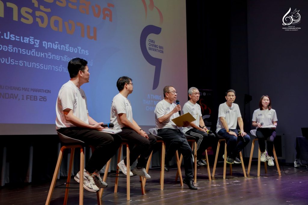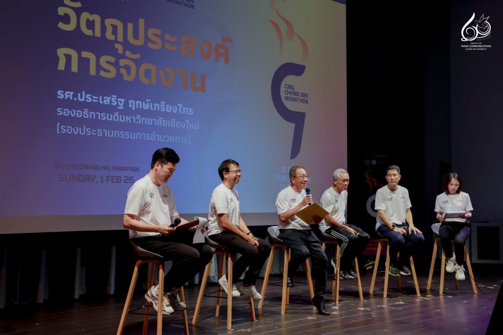 งานแถลงข่าวครั้งนี้ ได้รับเกียรติจากรองศาสตราจารย์ ประเสริฐ ฤกษ์เกรียงไกร รองอธิการบดี รักษาการแทนอธิการบดีมหาวิทยาลัยเชียงใหม่ เป็นผู้กล่าวถึงวัตถุประสงค์ของการจัดงาน CMU – Chiang Mai Marathon 2026 คุณกนิษฐ์ สารสิน อุปนายกสมาคมนักศึกษาเก่ามหาวิทยาลัยเชียงใหม่ (ประธานอนุกรรมการฝ่ายสิทธิประโยชน์) กล่าวถึงธีมงาน ประเภทนักวิ่ง ระยะทางการแข่งขัน และสิทธิประโยชน์นักวิ่ง คุณสมยศ วงษ์ทองสาลี ที่ปรึกษาสมาคมนักศึกษาเก่ามหาวิทยาลัยเชียงใหม่ (รองประธานกรรมการอำนวยการ) กล่าวถึงเส้นทางการแข่งขัน ผู้ช่วยศาสตราจารย์ ดร.วรวิชญ์ จันทร์ฉาย คณบดีวิทยาลัยศิลปะ สื่อ และเทคโนโลยี (ประธานอนุกรรมการฝ่ายลงทะเบียน) กล่าวถึงขั้นตอนการสมัคร อัตราการบริจาคสนับสนุน และรายละเอียดการรายงานตัวของผู้เข้าร่วม