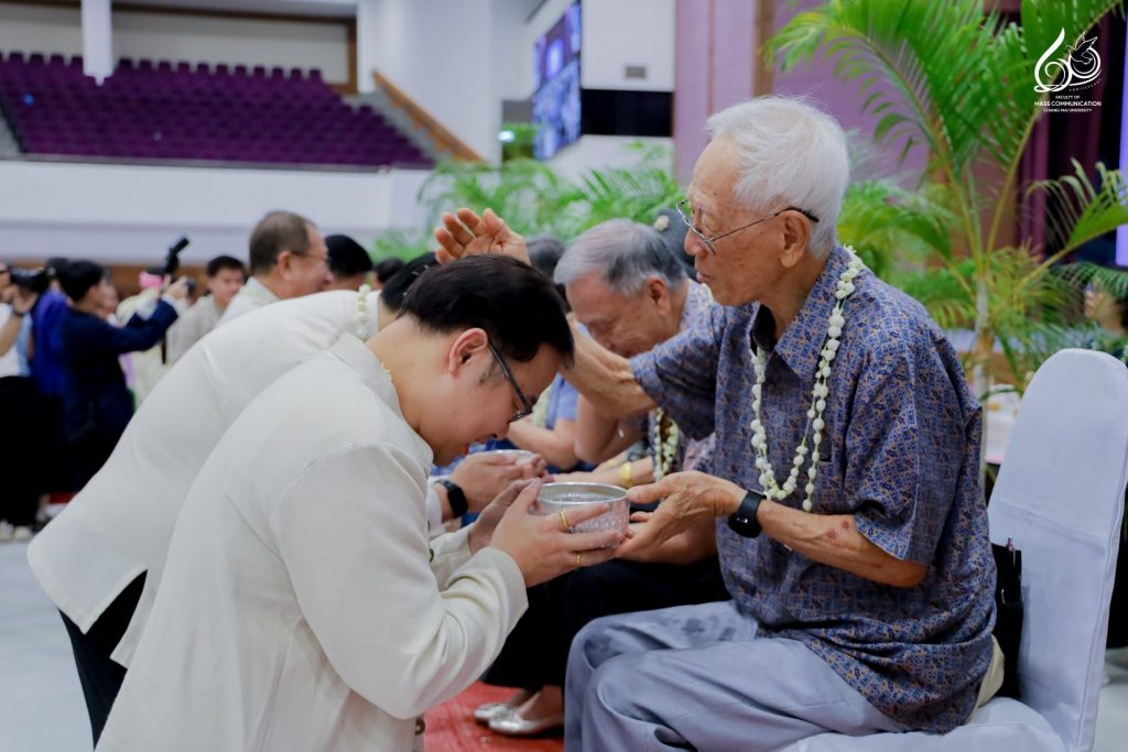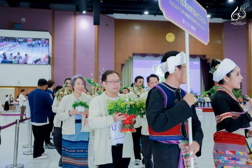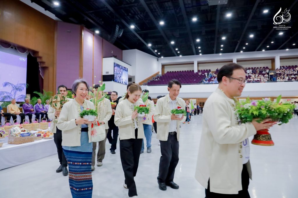 คณะการสื่อสารมวลชน มหาวิทยาลัยเชียงใหม่ นำโดย ผู้ช่วยศาสตราจารย์ ดร.ศุภฤกษ์ โพธิไพรัตนา คณบดีคณะการสื่อสารมวลชน พร้อมด้วยคณะผู้บริหาร คณาจารย์ และบุคลากรสายสนับสนุน เข้าร่วมพิธีดำหัวนายกสภามหาวิทยาลัย อดีตอธิการบดี และอาจารย์อาวุโส มหาวิทยาลัยเชียงใหม่ ประจำปี 2569 เพื่อแสดงความกตัญญูกตเวทีต่อผู้มีพระคุณ และร่วมสืบสานประเพณีปี๋ใหม่เมือง (สงกรานต์ล้านนา) อันทรงคุณค่าให้คงอยู่คู่มหาวิทยาลัยและชุมชนอย่างยั่งยืน ณ หอประชุมมหาวิทยาลัยเชียงใหม่ ในวันศุกร์ที่ 24 เมษายน 2569 เวลา 13.30 – 16.00 น.