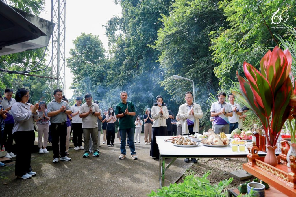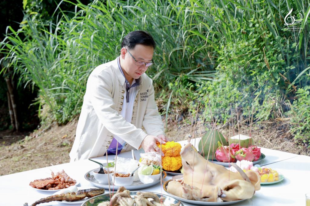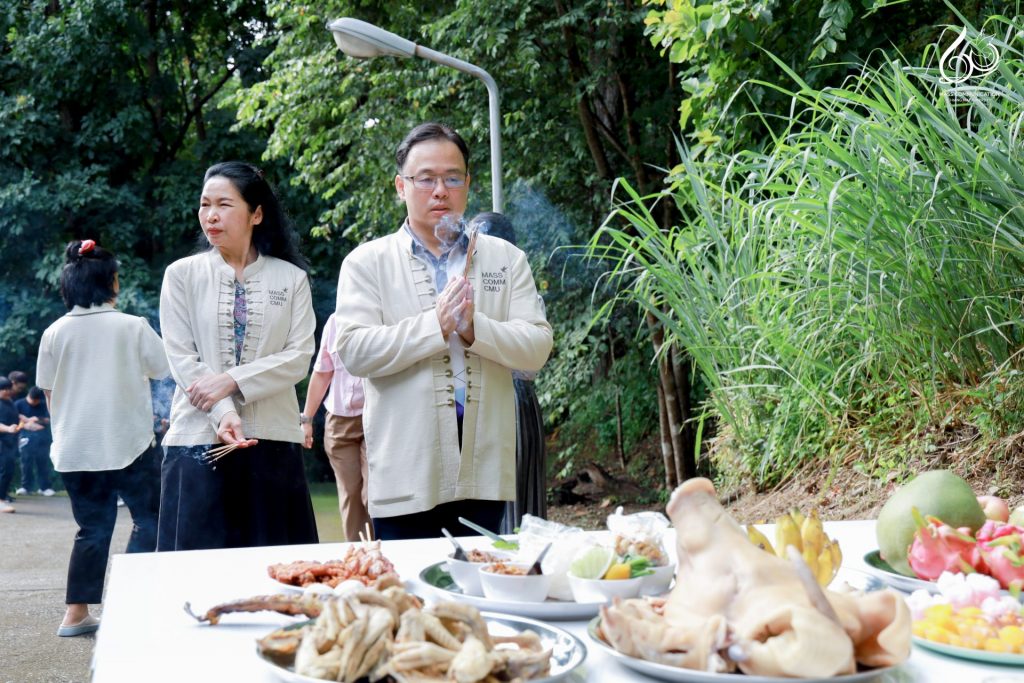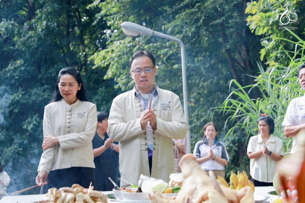 ผู้ช่วยศาสตราจารย์ ดร.ศุภฤกษ์ โพธิไพรัตนา คณบดีคณะการสื่อสารมวลชน มหาวิทยาลัยเชียงใหม่ พร้อมด้วย ดร.ปิยะวัน จันทราภานนท์ เลขานุการคณะการสื่อสารมวลชน นำทีมบุคลากร ร่วมประกอบพิธีไหว้ศาลอารักษ์ เทพทั้ง 3 ได้แก่ ท้าวคำฝาย ท้าวรินดง และท้าวอ้ายเครือ เพื่อความเป็นสิริมงคลแก่บุคลากรและนักศึกษาของคณะ เนื่องในโอกาสครบรอบวันจัดตั้ง “ศาลอารักษ์” ประจำปี 2568 ณ บริเวณศาลอารักษ์ อาคารเครื่องส่งสัญญาณสถานีวิทยุเสียงสื่อสารมวลชน (FM100) ในวันอังคารที่ 14 ตุลาคม 2568 เวลา 08.39 – 09.00 น.