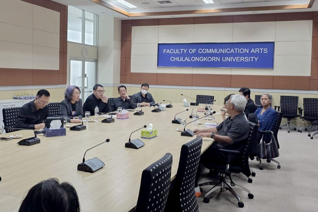 วันที่ 13 พฤศจิกายน 2568 เวลา 13.30 น. คณะศึกษาดูงานได้เข้าพบผู้บริหาร คณะนิเทศศาสตร์ จุฬาลงกรณ์มหาวิทยาลัย เพื่อศึกษากระบวนการจัดตั้งและการบริหารงานของ CU Nitade Extension รวมถึงแนวปฏิบัติที่เป็นเลิศ (Best Practices) ด้านสื่อสร้างสรรค์ โดยมี รองศาสตราจารย์ ดร.ปรีดา อัครจันทโชติ คณบดีคณะนิเทศศาสตร์ พร้อมผู้บริหารให้การต้อนรับและแลกเปลี่ยนองค์ความรู้ร่วมกัน