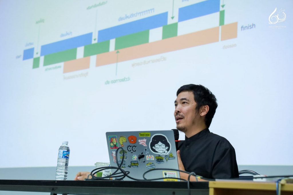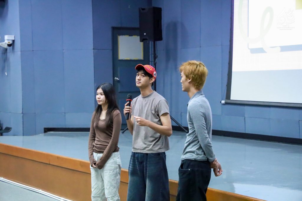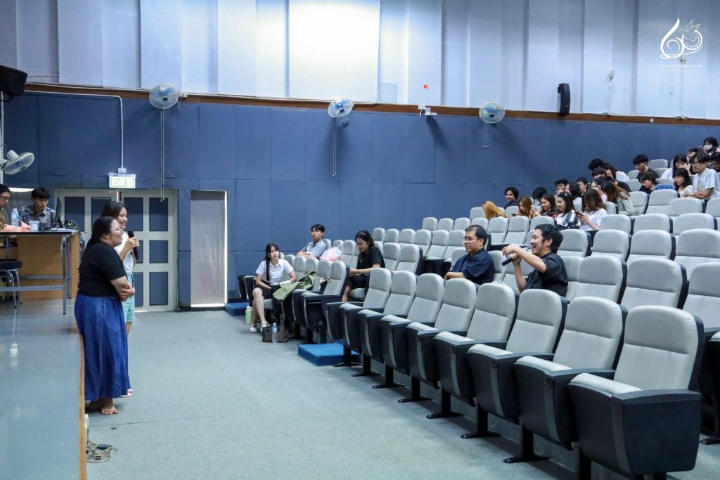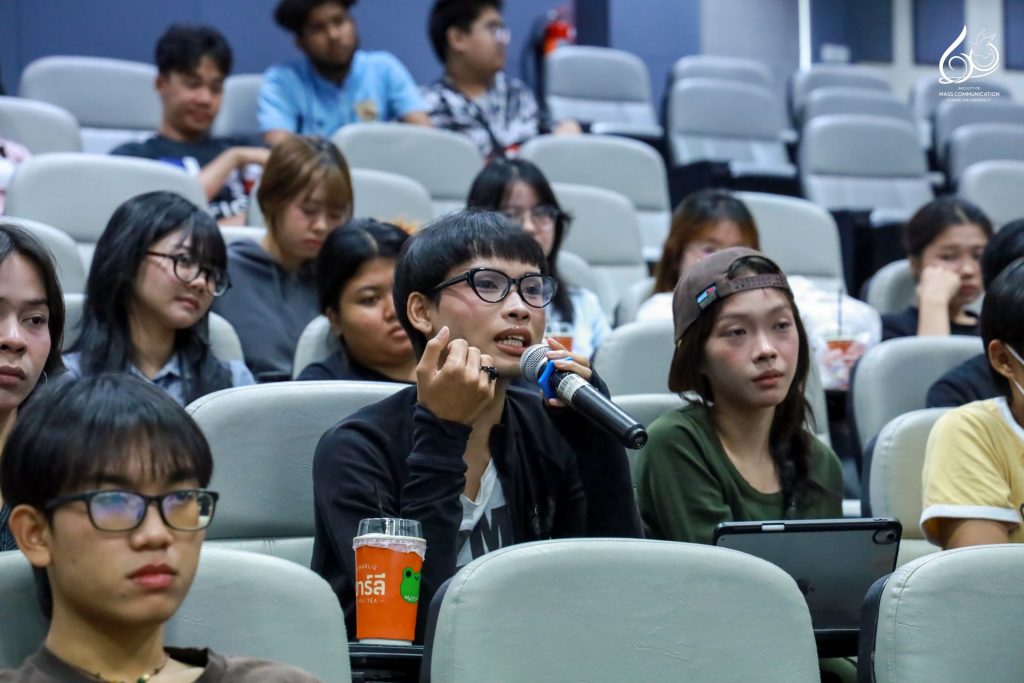 ภายในกิจกรรม คุณไก่ ณฐพล ได้ถ่ายทอดประสบการณ์การทำงานจริงในวงการภาพยนตร์ ทั้งจากเส้นทางการเป็นผู้เขียนบทภาพยนตร์ชื่อดัง ไปจนถึงการกำกับหนังสารคดี และพัฒนาสู่การเป็นผู้กำกับซีรีส์บนแพลตฟอร์มระดับโลกอย่าง Netflix พร้อมแลกเปลี่ยนมุมมองการ “แปลงความจริงให้เป็นเรื่องเล่า” ที่สะท้อนพลังของสื่อสารคดีในการสร้างความเข้าใจและแรงบันดาลใจแก่ผู้ชม นอกจากนี้ ยังมีการฉายผลงานสารคดีขนาดสั้นของนักศึกษาในกระบวนวิชา 851347 การผลิตรายการข่าวและสาระบันเทิง (News and Entertainment Program Production) ความยาว 5 – 7 นาที โดยได้รับคำวิจารณ์และข้อเสนอแนะจากผู้กำกับมืออาชีพ เพื่อพัฒนาคุณภาพการเล่าเรื่องและทักษะด้านการผลิตสื่อให้ดียิ่งขึ้น