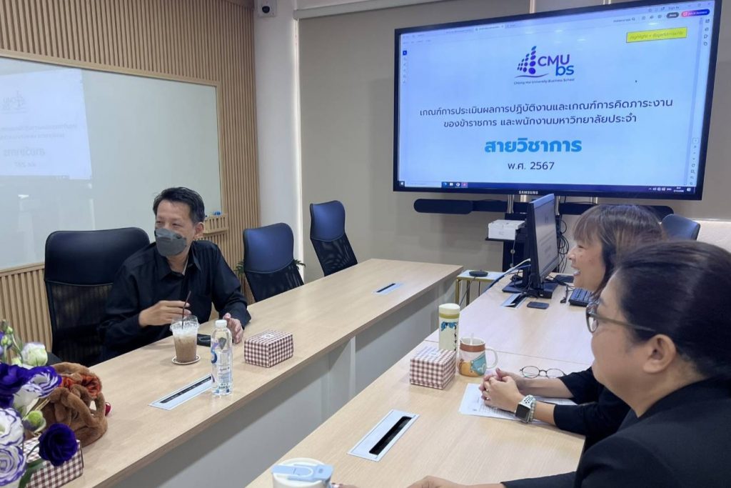 การศึกษาดูงานในครั้งนี้ได้รับเกียรติจาก ผู้ช่วยศาสตราจารย์ ดร.สายนที เฉินบำรุง รองคณบดีด้านการบริหารและการพัฒนาบุคลากร พร้อมด้วย หัวหน้างานบริหารทั่วไป และรักษาการแทนเลขานุการคณะบริหารธุรกิจ และบุคลากรด้านบริหารงานบุคคล ให้การต้อนรับและให้ข้อมูลเกี่ยวกับการจัดเก็บข้อมูลภาระงานด้านต่าง ๆ ผ่านระบบ CMU-MIS แนวทางการประเมินผลการปฏิบัติงาน (สายวิชาการ/สายสนับสนุน) การส่งเสริมและพัฒนาบุคลากร ผ่านระบบ CMU IDP และระบบการขออนุมัติเดินทางไปปฏิบัติงาน ซึ่งเป็นเครื่องมือสำคัญในการยกระดับการบริหารจัดการภายในองค์กรให้มีประสิทธิภาพและทันสมัย ของคณะบริหารธุรกิจ มหาวิทยาลัยเชียงใหม่ (CMUBS)