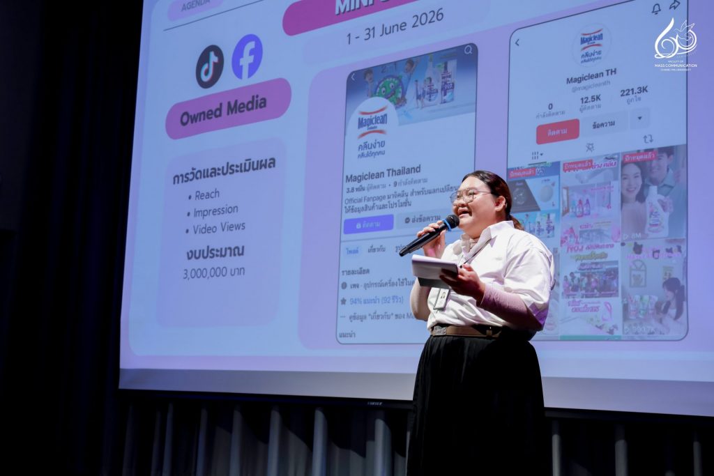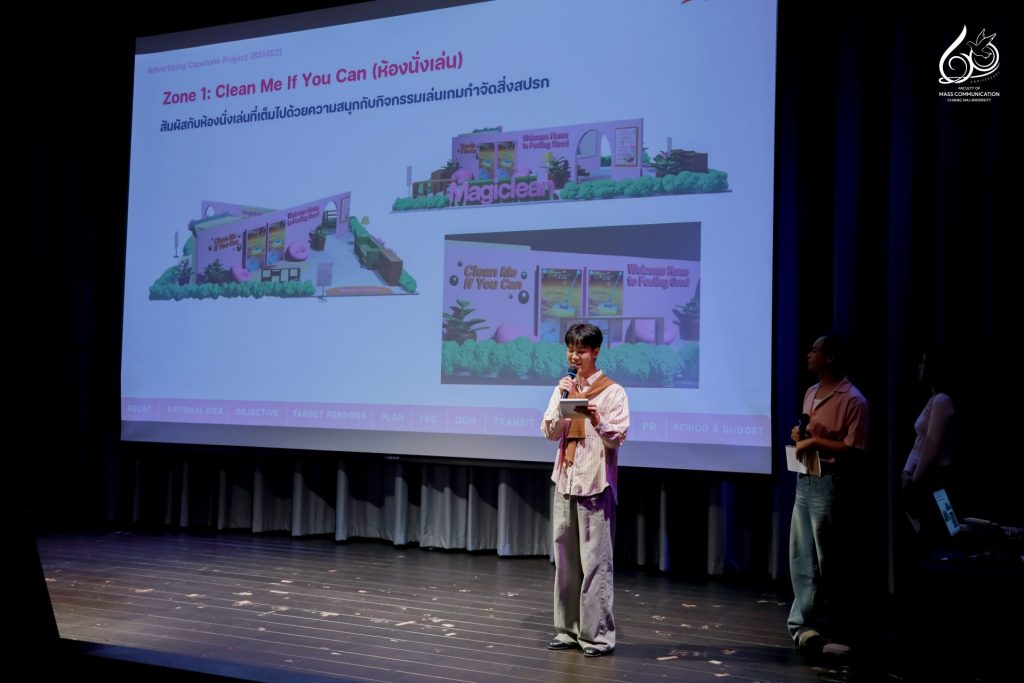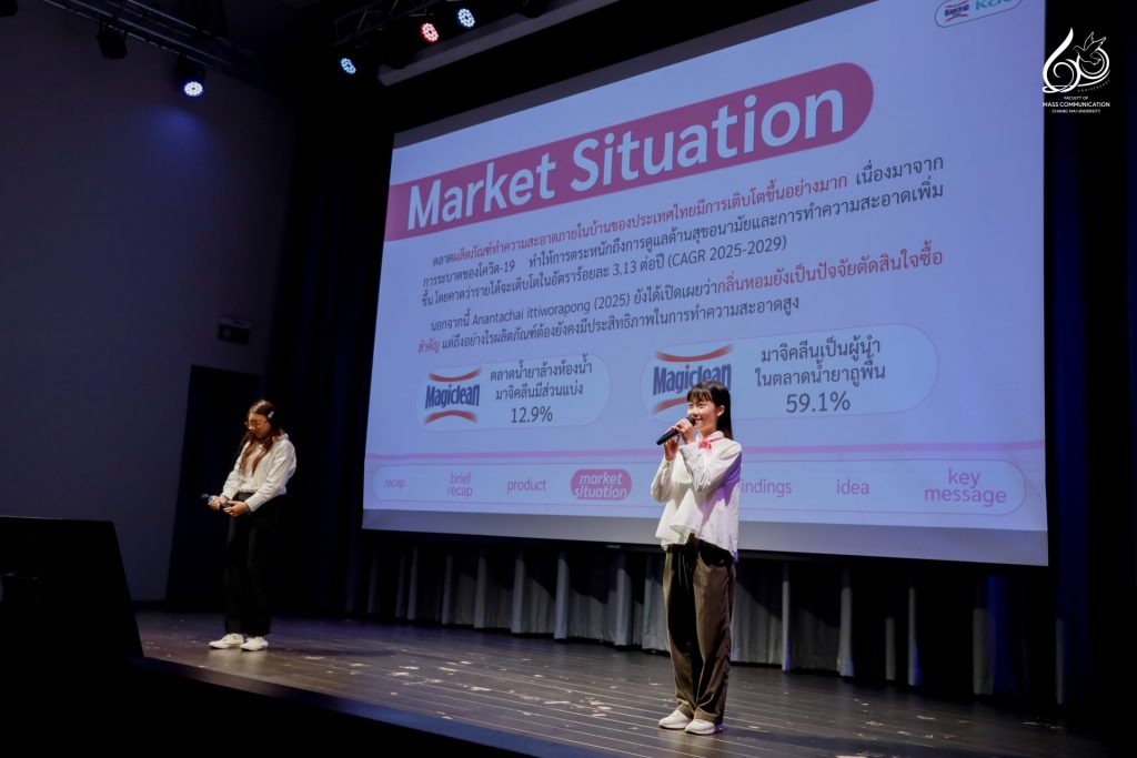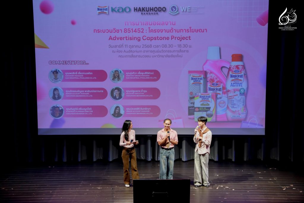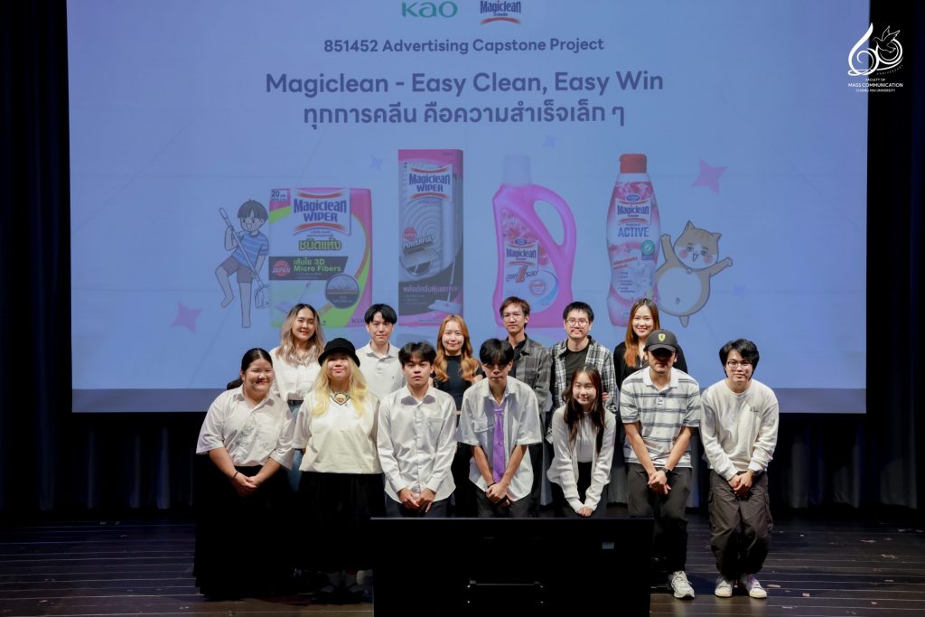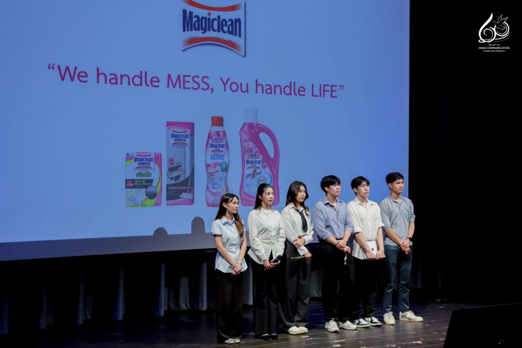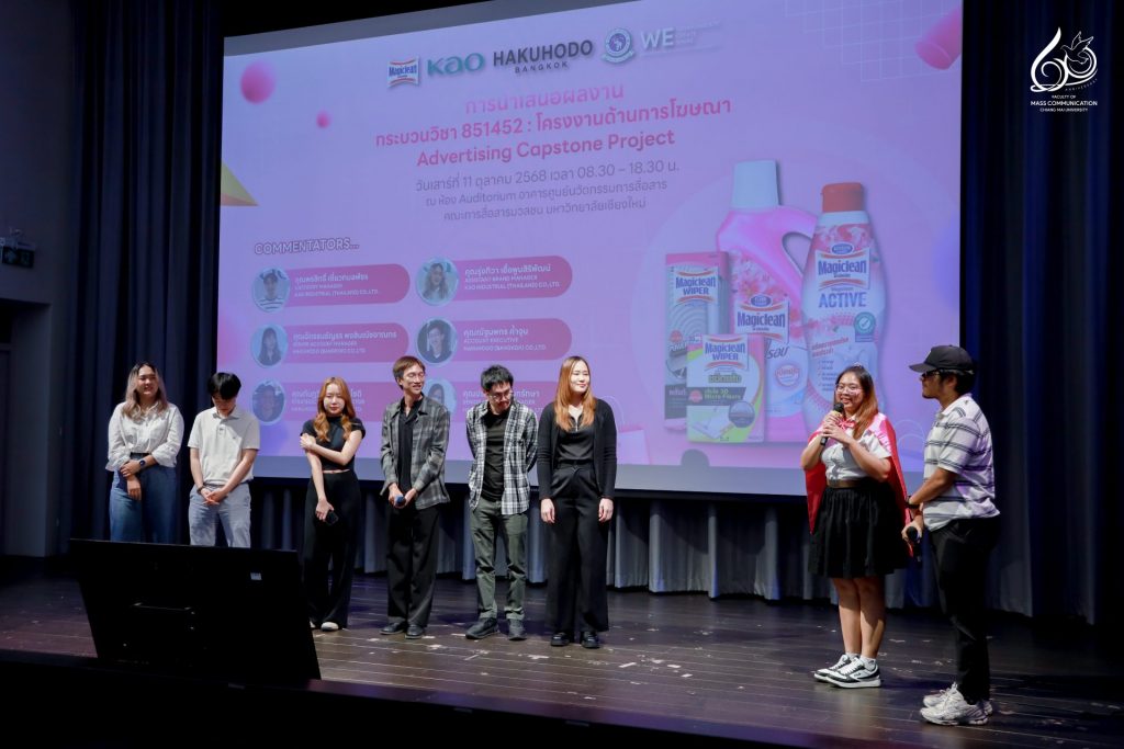 นักศึกษาชั้นปีที่ 4 วิชาเอกการสื่อสารการตลาด (Marketing Communication) สาขาการโฆษณา คณะการสื่อสารมวลชน มหาวิทยาลัยเชียงใหม่ โชว์ฝีมือ สาดไอเดียความคิดสร้างสรรค์ ในโครงการ “Professional Advertising Capstone Project” ด้วยความท้าทายสุดเข้ม โจทย์จากแบรนด์ระดับโลก “มาจิคลีน” (Magiclean) ผู้ช่วยในการทำความสะอาด ที่พร้อมมอบวิธีการทำความสะอาดอย่างมีคุณภาพให้กับบ้านของคุณ มาจิคลีน สะอาดง่ายได้อย่างมหัศจรรย์ โดยความร่วมมือระหว่างวิชาเอกการสื่อสารการตลาด คณะการสื่อสารมวลชน มหาวิทยาลัยเชียงใหม่ บริษัท คาโอ อินดัสเตรียล (ประเทศไทย) จำกัด (Kao Industrial (Thailand) co. ltd) และบริษัท ฮาคูโฮโด (กรุงเทพฯ) จำกัด (Hakuhodo (Bangkok) co. ltd) ณ ห้อง Auditorium อาคารศูนย์นวัตกรรมการสื่อสาร คณะการสื่อสารมวลชน มหาวิทยาลัยเชียงใหม่ เมื่อวันเสาร์ที่ 11 ตุลาคม 2568 เวลา 08.30 – 18.30 น.