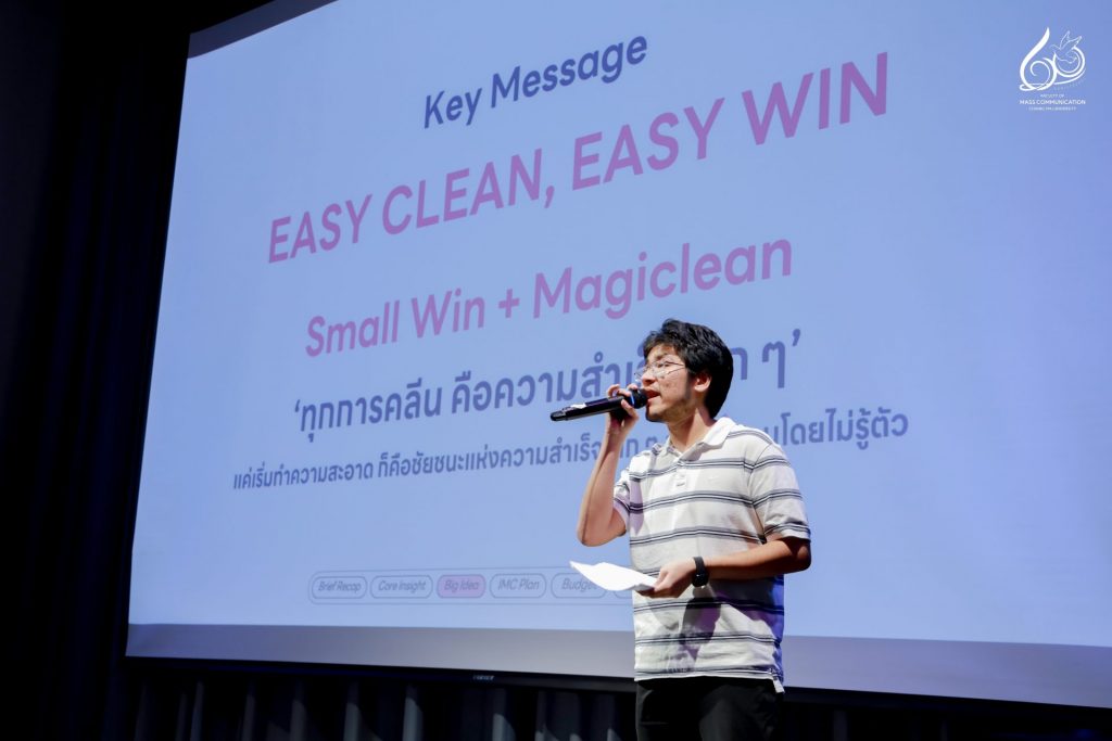 โจทย์สุดท้าทายในครั้งนี้ นักศึกษาต้องระดมสมองเพื่อสร้างสรรค์แคมเปญการตลาดที่สดใหม่สำหรับผลิตภัณฑ์ทำความสะอาด มาจิคลีน สำหรับกลุ่ม New Living ภายใต้แนวคิด “Easy to clean, Everyone can clean มาจิคลีน คลีนง่าย คลีนได้ทุกคน” นักศึกษาได้นำความรู้ที่สั่งสมมาตลอดหลักสูตรมาประยุกต์ใช้ในการสร้างสรรค์แผนการตลาดที่ครอบคลุมทุกมิติ ไม่ว่าจะเป็น Events Marketing สุดล้ำ Contents Design ที่โดนใจ MarCom Full Plan (IMC Plan) ที่ครบเครื่อง ทุกไอเดียถูกขับเคลื่อนด้วยการคิดวิเคราะห์เชิงลึก ความคิดสร้างสรรค์แบบไร้ขีดจำกัด และกลยุทธ์การตลาดที่ทันสมัย ประกอบกับใช้เทคโนโลยี AI เพื่อให้ทุกไอเดียก้าวล้ำไปอีกขั้น หลายไอเดียถูกใจเจ้าของโจทย์และอาจพัฒนาไปสู่การใช้งานจริงในอนาคต