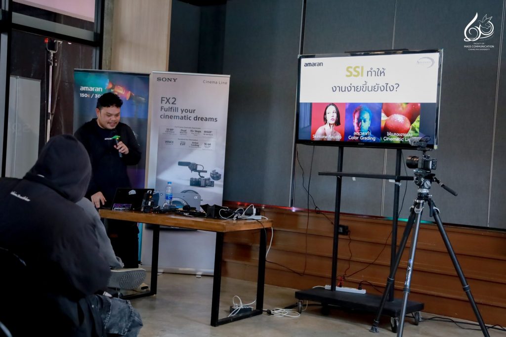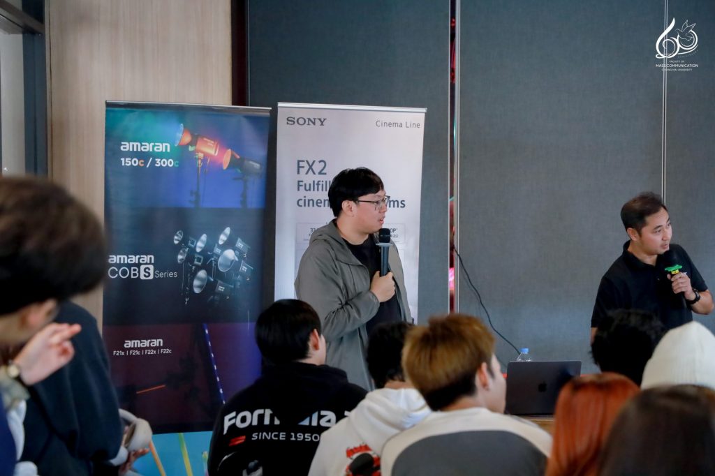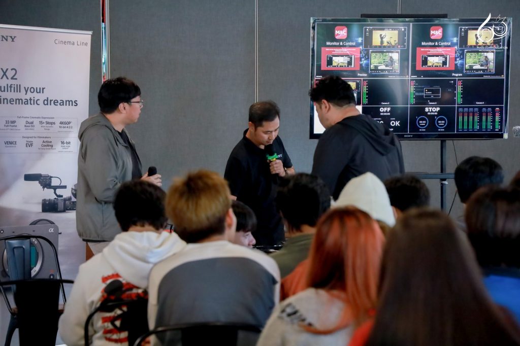 ภายในงาน นักศึกษาได้ศึกษาตั้งแต่กระบวนการวางแผนถ่ายทำ เทคนิคจัดแสง–มุมกล้อง ขั้นตอนทำงานของทีมโปรดักชัน ไปจนถึงทดลองใช้งานจริงกับกล้อง Sony Cinema Line รุ่น FX และ FX3 ซึ่งได้รับความนิยมอย่างสูงในงานผลิตภาพยนตร์ระดับนานาชาติ ช่วยให้นักศึกษาเข้าใจวิธีการทำงานของอุปกรณ์จริงและสามารถพัฒนาทักษะการถ่ายทำในสถานการณ์เสมือนจริงได้อย่างมีประสิทธิภาพ